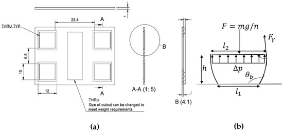 (a) Dimensions of actuation panel (“THRU TYP” stands for “Through Typical”). (b) The force balance of one of the n droplets.