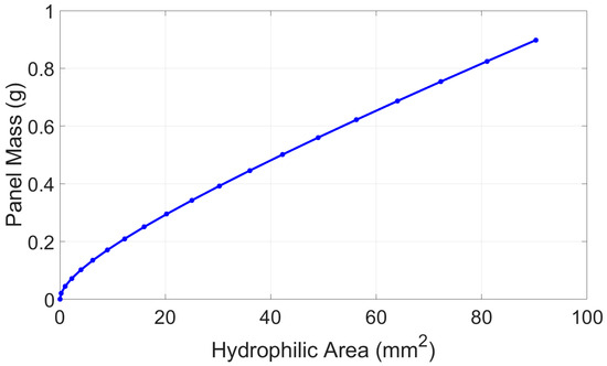 Estimation of the maximum allowable panel mass as a function of the required hydrophilic area.