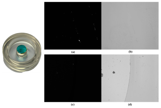 Figure 14a–d. Under laser dark-field illumination, only the defects along the incident light’s normal direction scattered the light, while the radial defects did not. Therefore, for patterned defect detection, dark-field illumination alone was insufficient and bright-field processing was essential. Dark-field illumination can serve as an auxiliary for detecting small defects, providing a combined approach for a comprehensive analysis.
