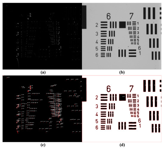 In the defect detection field, unpatterned and patterned defect detection often follow two distinct technical approaches. To validate the prototype’s performance and resolution for patterned defect detection, a quantitative assessment was conducted using the USAF 1951 resolution chart, which is a resolution test pattern that complies with the MIL-STD-150A standard created by the United States Air Force in 1951 and is widely used to test the resolution capability of optical imaging systems.