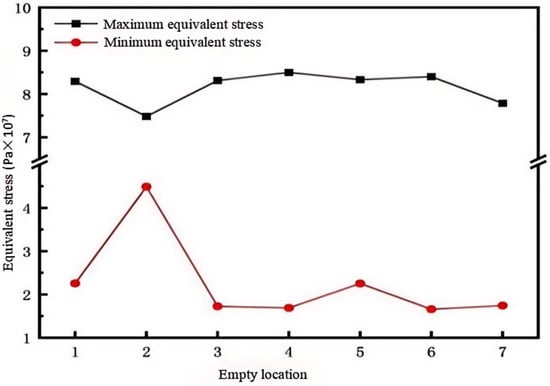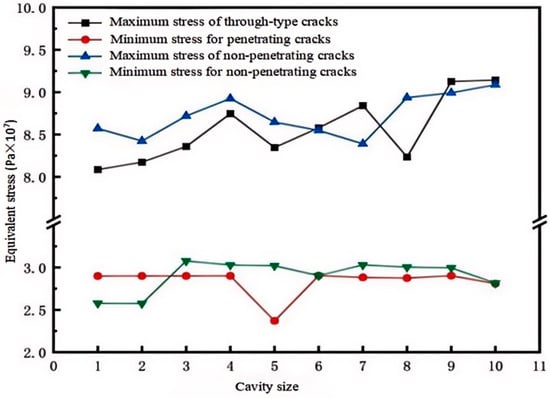4.1.2. The Effect of Different Cavity Locations on Stress