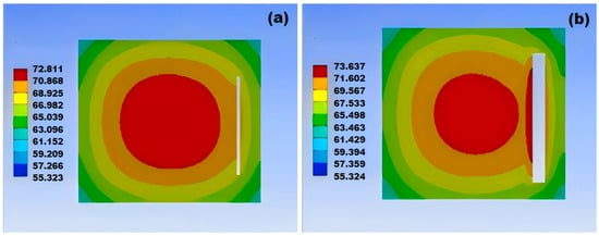 Sn63Pb37 solder is a eutectic solder composed of 63% Snand 37% Pb, featuring many excellent properties, a melting point of approximately 183 °C, and a density of about 8.40 g/cm3. As shown in Figure 6a, the highest temperature at the center of the solder layer is 72.208 °C, while the lowest temperature at the two wings is 36.584 °C; as illustrated in Figure 6b,c, the module undergoes significant deformation, but the changes are uniform.