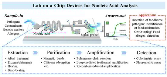 Schematic overview for microfluidic lab-on-a-chip technology for nucleic acid analysis in food safety control.