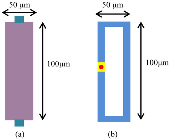 Two antennas with the same size 250 μm 50 μm, (a) ME antenna, (b) micro-loop antenna.