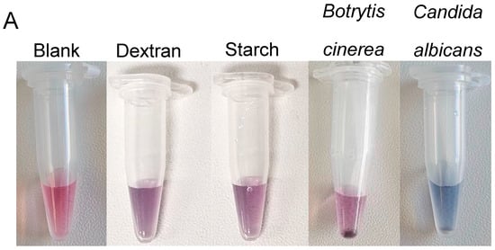 Dextran ([C6H10O5]n), starch ([C6H10O5]n) and Botrytis cinerea were chosen for testing the stability and specificity of the nanoparticles within other glucan solutions. These reagents were selected due to their availability and glucan composition. Dextran is a complex glucan that is composed of a main chain of d-glucose linked by α-(1–6) bonds with possible d-glucose branches with α-(1–4), α-(1–3), or α-(1–2) bonds [37]. Dextran exhibits variation in terms of its branching and molecular weight based on temperature or sucrose concentration [37]. Dextran is highly water soluble [38], and it is expected that the glucan molecules will be highly amenable to exposure to the AD1 aptamers of nanoparticles—which is essential for nanoparticle specificity testing. The use of dextran as a control sample was also clinically relevant to this work as dextran may be isolated from different sources of lactic acid bacteria that are found in vaginal swabs. These bacteria include Lactobacillus gasseri and Lactobacillus acidophilus [37].