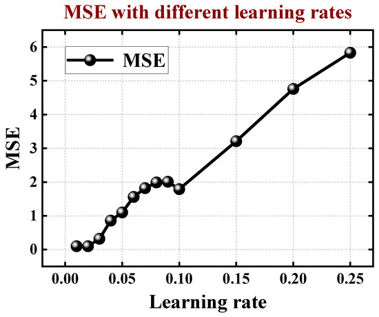 Moreover, we have studied the impact of the learning rate on MSE. In our ANN model, the learning rate is a crucial hyper parameter in training neural networks. It controls the magnitude of updates applied to the weights during the training process. A higher learning rate means larger updates, leading to faster convergence but with the risk of overshooting the optimal weights. Conversely, a lower learning rate allows for smaller weight updates, potentially resulting in slower convergence but increased precision in finding the global minimum. Through our experiments, we think learning rate of 0.02 is the best solution for the ANN model as shown in Figure 6.