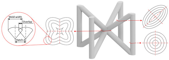 - The overlap of the welds had a major influence on the porosity formation in the contour scanning strategy. The overlap value was determined based on the width of the weld of hollow strut specimens.