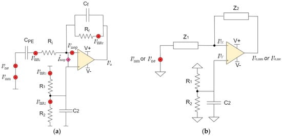 where is the dissipation factor and is the radian frequency. From the equivalent circuit point of view, and are located in the same node, as shown in Figure 2b. Therefore, the same mathematical derivation follows for the noise gain and . The corresponding voltage noise gain due to is given as: