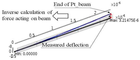 The results were also used to determine the forces acting on the microcantilever, based on the finite element method, and to obtain the rotational torque for the input and output. The ultrafine platinum wires used for torque detection were silver-coated and used as the force-sensing element of the microcantilever by removing the silver with nitric acid. For this reason, measurements in the micro-torque range were also carried out with several different platinum wires, although it was not always possible to obtain straight and constant lengths of the rod-shaped platinum wires. The force measurements were also performed using a slightly bent ultrafine wire. In such cases, even if the measurement results were bent, they could be performed without any variation because of the finite element method processing, which accurately captured the shape of the platinum wire. The power transmission efficiency could be determined by observing the balance of moments between the input and output during this deformation.