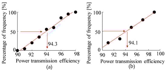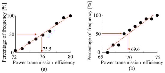Assuming that the results were normally distributed, the micro- and macro-results were then tested for differences in dispersion using the F-distribution. The results showed that F0 = 1.146 < F(19.9: 0.025) = 2.88, indicating no difference in variance between the results of the two measurements. However, the results of the investigation using the t-distribution for the difference between the mean values of the two power transmission efficiencies, t0 = 5.56 > t(28, 0.025) = 2.048, showed a difference between the results of the mean values of the two.