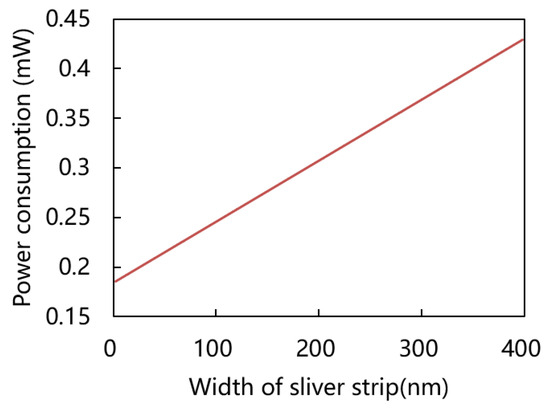 Power consumption at 200 °C versus width of silver strip.