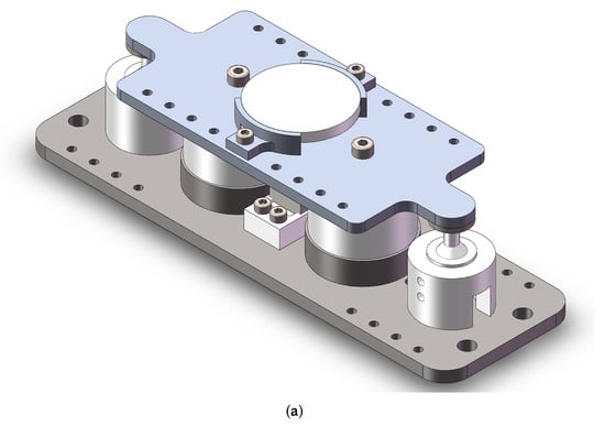 In the analysis of the kinematic accuracy of the flexible hinge, the displacement of the geometric center of the flexible hinge, that is, the displacement of the deflection center of the flexible hinge, is generally used as a quantitative measure of the kinematic accuracy of the flexible hinge []. In this FSM, the repeated positioning accuracy is rad. The displacement of the center point, according to the formula of material mechanics, is obtained as follows.