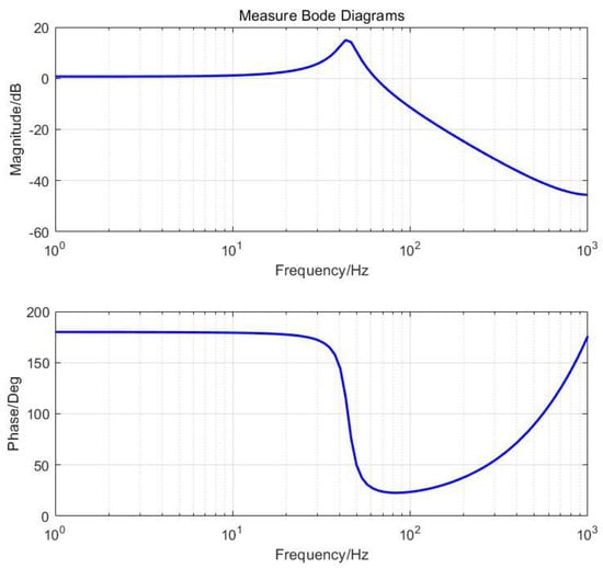 Under these parameter settings, the system has a phase margin of , ensuring stability and effectively eliminating the first-order resonance. The characteristics of the system and the closed-loop transfer function after tuning are displayed in Figure 9.