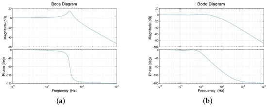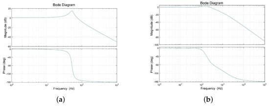 where k is the gain of the controlled plant, and are the natural frequency and damping ratio of the second-order oscillation element, respectively. T is the parasitic time constant. The inertial element in Equation (3) is due to the presence of the motor []. When there is no motor in the system, the transfer function of the system can be expressed below.