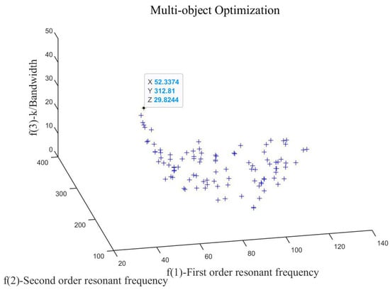 Based on the descriptions in Section 4.1 and Section 4.2, the optimization objectives are established as the first-order resonance frequency, the second-order resonance frequency, and the working bandwidth. Therefore, the following multi-objective optimization function is constructed.