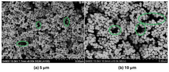 Shi et al. [25] synthesized copper nanowire arrays on copper surfaces via porous alumina membrane template-assisted electrodeposition. The copper nanowire arrays, presenting defects, improved the wettability and enhanced the nucleation site density; thus, they attained an improved nucleate boiling heat-transfer performance. Figure 3 displays SEM images of the defects in the nanowire arrays.