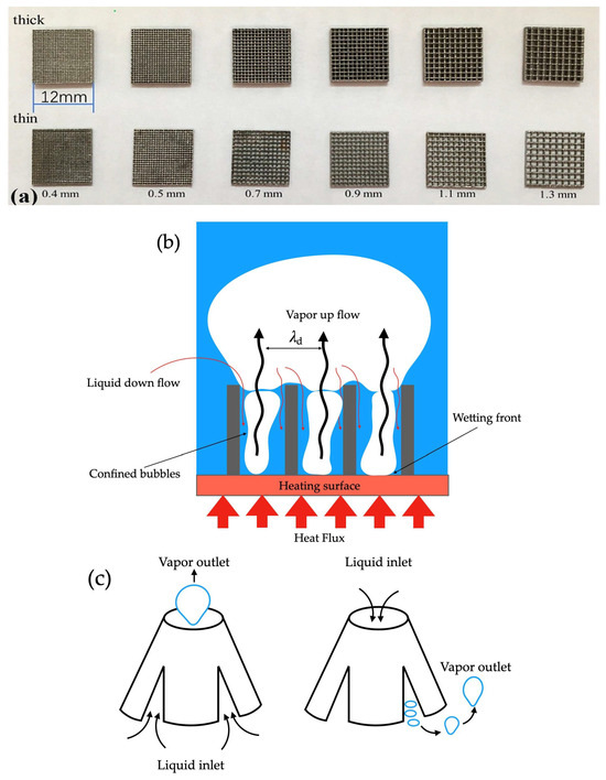 - Rahman, M.M.; Olçeroglu, E.; McCarthy, M. Role of Wickability on the Critical Heat Flux of Structured Superhydrophilic Surfaces. Langmuir 2014, 30, 11225–11234. [Google Scholar] [CrossRef]
