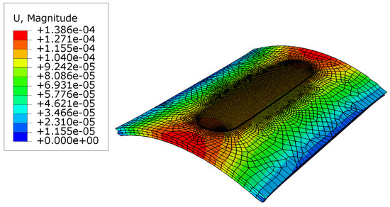The results of the distortion are indicated in Figure 10. As can be seen, the center of the workpiece is deformed around 0.13 mm. Moreover, a convex shape is formed due to the spring back compensation caused by the pressure from the tool and the filler material. Modelling this distortion is challenging, because in the model, a heat flux is considered as the tool, and thus, an input pressure should be considered as the initial tool pressure. Following this, the results of the previous step should be used as an input for the next layer. Hence, the accuracy of the friction model is notable. It can be seen that the distortion at the sides of the workpiece is less than at the center of the workpiece. This occurs because of the clamping. Furthermore, a boundary condition is fixed the workpiece sides; hence, minimum distortion is observed at the center of the workpiece [51,52].
