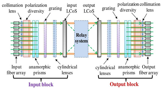 Figure 1, the main function of M × N port WSS is to convert the optical signal from a fiber to a spatial beam, and then, switch multiple beams to any target output ports [