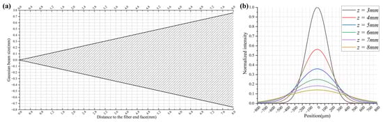 26]. It is known that the waist radius of the Gaussian beam behind the micro-lens is 165 μm, and the Gaussian beam field distribution at the 300 mm position can be calculated based on Equation (