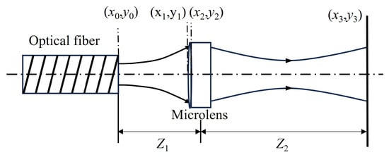 14]. When the Gaussian beam is transformed through the micro-lens, diffraction phenomena occur, significantly impacting light field calculations due to the small size of the beam spot at the fiber end. To attain precise optical field calculations in such situations, we turn to the Fresnel–Kirchhoff diffraction theory [