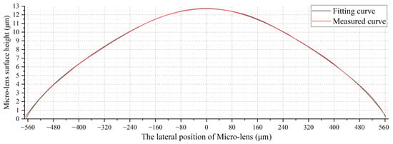 Figure 8. The main reason for this is that the chemical etching method resulted in a micro-lens surface type inconsistent with our design. The micro-lens surface type curve obtained through the step profiler test is shown in