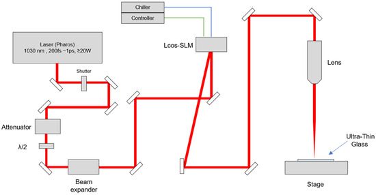 - Kim, J.; Kim, S.; Kim, B.; Choi, J.; Ahn, S. Study of Through Glass Via (TGV) Using Bessel Beam, Ultrashort Two-Pulses of Laser and Selective Chemical Etching. Micromachines 2023, 14, 1766. [Google Scholar] [CrossRef] [PubMed]