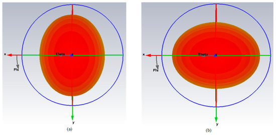 Figure 10. Simulated 3D radiation patterns of the proposed antenna. (a) Port 1 excited; (b) port 2 excited.