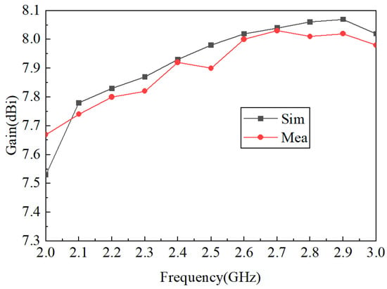 Figure 12. Simulated and measured gain of the proposed antenna.