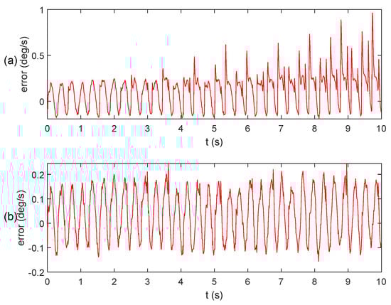 Angular velocity calculation error: (a) existing algorithm; (b) our algorithm.