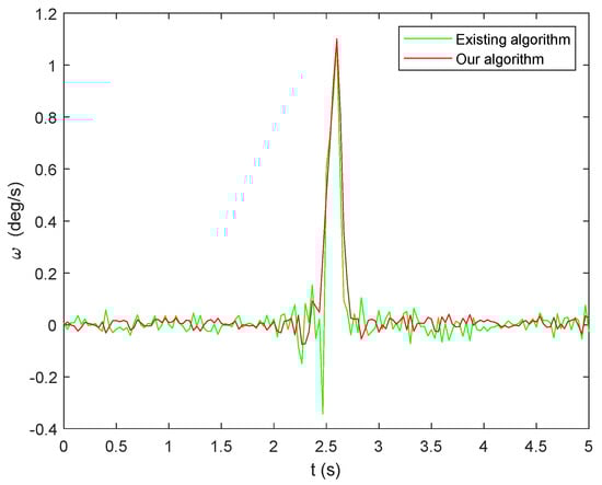 Throughout the experiment, a sampling frequency of 100 Hz was utilized, and a total of 12 sets of accelerometer data were collected. The proposed algorithm as well as the existing algorithm were both applied to calculate the angular velocity, taking the Z-axis as an example. The outcomes are depicted in Figure 9.