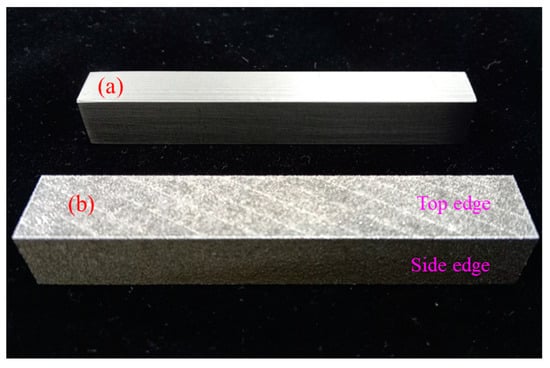 The impact specimens made of 316L stainless steel. (a). Cold rolled steel; (b). 3D-printed steel (3D additive manufactured steel).