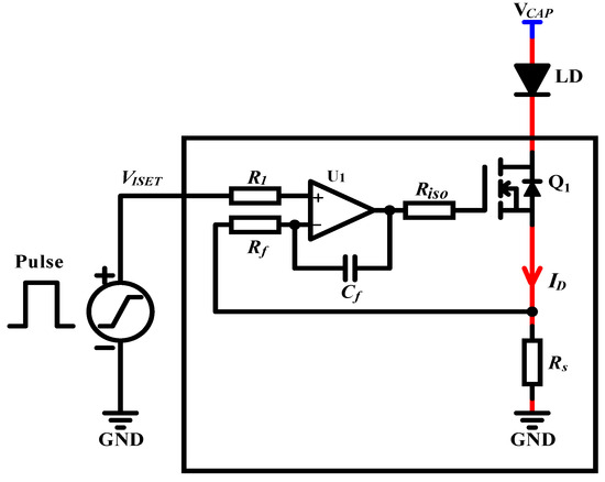 - Li, H.; Bao, H. Design and key parameter analysis of high speed and large current pulse width adjustable pulse constant-current source. In Proceedings of the 2020 3rd International Conference on Advanced Electronic Materials, Computers and Software Engineering (AEMCSE), Shenzhen, China, 24–26 April 2020; pp. 868–871. [Google Scholar]