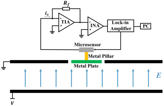 - Lei, H.; Xia, S.; Chu, Z.; Ling, B.; Peng, C.; Zhang, Z.; Liu, J.; Zhang, W. An electric field microsensor with mutual shielding electrodes. Micromachines 2021, 12, 360. [Google Scholar] [CrossRef] [PubMed]