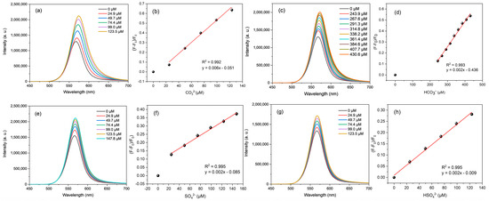 - Peng, L.; Guo, H.; Wu, N.; Liu, Y.; Wang, M.; Liu, B.; Tian, J.; Wei, X.; Yang, W. Ratiometric fluorescent sensor based on metal–organic framework for selective and sensitive detection of CO32−. Spectrochim. Acta Part A Mol. Biomol. Spectrosc. 2023, 299, 122844. [Google Scholar] [CrossRef]