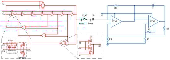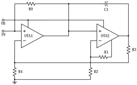 The resistance network is composed of OTA2, , , and , while E represents the saturated output voltage of OTA.