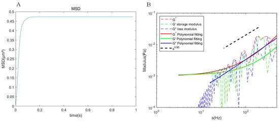 To derive the storage modulus () and the loss modulus from the MSDs, we utilized an approximate method [], outlined as:
