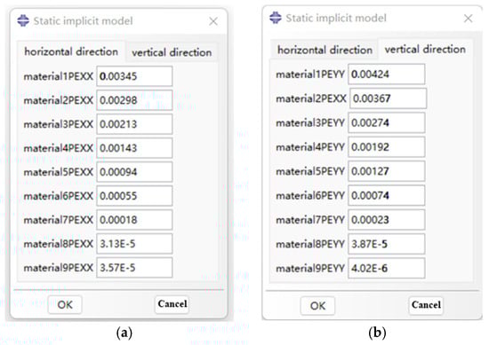 Interface of aluminum alloy 6082-T6 implicit static model plugin. (a) Transverse intrinsic strain; (b) longitudinal intrinsic strain.