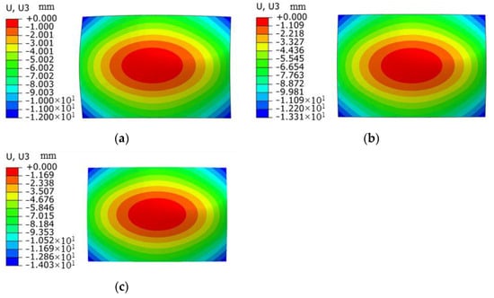 Deformation diagrams of 6082-T6 aluminum alloy flat plates at different laser energy levels. (a) Energy 5 J; (b) energy 6 J; (c) energy 7 J.