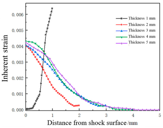 Plastic strain distribution along the depth direction of the target material under different plate thicknesses.
