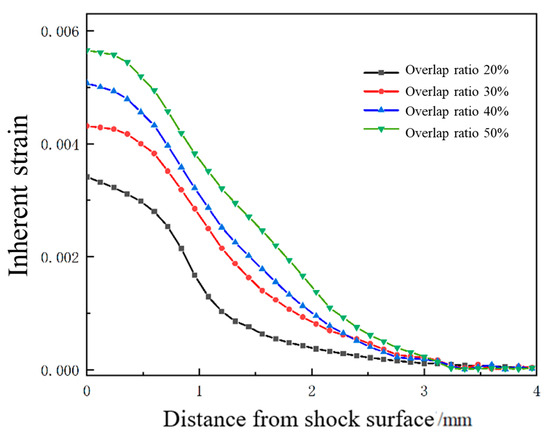 Plastic strain distribution along the depth direction of the target material under different overlap rates.