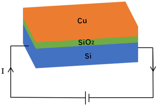 As shown in Figure 3, the designed micro-hotplate is based on an SOI wafer with a Si substrate thickness of 500 μm, a SiO2 dielectric layer thickness of 1 μm, and a surface copper layer thickness of 30 μm. Place the micro-hotplate into a sealed cavity and heat it with electricity. According to Joule’s law, the energy generated is