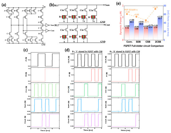 - Kim, S.; Choi, I.; Cho, S.; Kang, M.; Baik, S.; Ra, C.; Jeon, J. Analysis of Logic-in-Memory Full Adder Circuit with Floating Gate Field Effect Transistor (FGFET). IEEE Access 2023, 11, 97778–97785. [Google Scholar] [CrossRef]