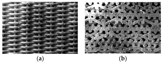 Surface structure of sintered metal wire mesh: (a) sintered metal wire mesh outer surface and (b) sintered metal wire mesh cross section.