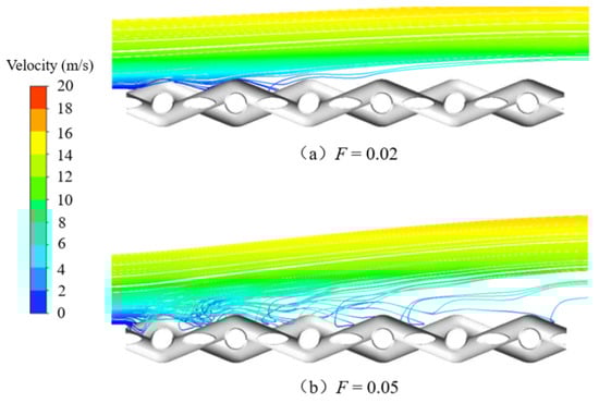Streamline distribution of the upstream area of the main stream along the wire mesh under different blowing ratios.