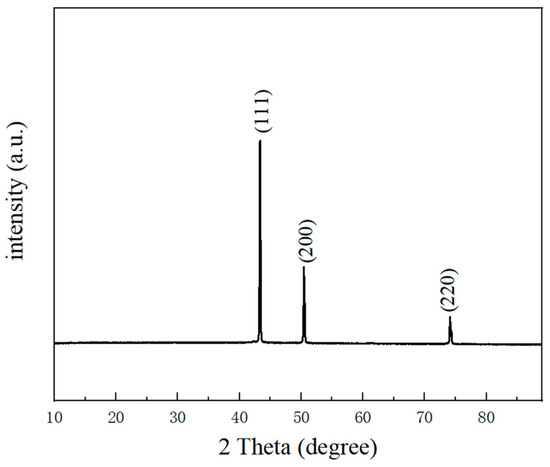 The morphology and structure of the fabricated NPC were studied by XRD and SEM. As shown in Figure 2, the sintered product was copper with no other impurities, and the peaks at 43.30°, 50.43° and 74.13° corresponded to the reflections of the (111), (200) and (220) crystalline planes of copper (JCPDS No. 04-0836).