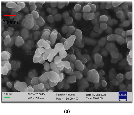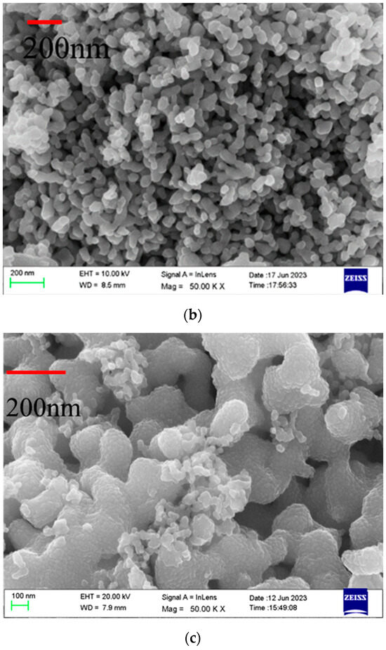 Figure 3a illustrates the preparation process of the precursor without the addition of copper acetate, referred to as Sample 1; Figure 3b portrays the preparation process of the precursor with the addition of 7% copper acetate, denoted as Sample 2; and Figure 3c showcases the preparation process of the precursor with the addition of 4% copper acetate, designated as Sample 3. Scanning electron microscopy revealed that the precursors obtained from the preparation exhibited a uniform size distribution with an ellipsoidal shape. The particle size of Sample 1 was approximately 100 nm, Sample 2 was around 60 nm and Sample 3 was about 30 nm. This indicates that the inclusion of copper acetate in a precursor preparation can decrease the particle size of nanoporous copper and the particle size of the nanoporous copper can be controlled by adjusting the amount of copper acetate added.