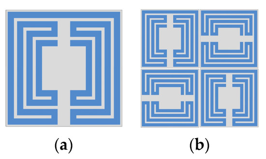 The Matryoshka configurations are highly meandered, and the total area occupied is defined by the external ring. The physical parameters of an open square Matryoshka configuration, with four rings, are indicated in Figure 4. For the closed Matryoshka geometry, there is no gap at the inner ring (s = 0). When a Matryoshka geometry is used in an FSS, it is also necessary to specify the unit-cell size.