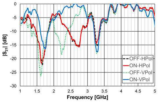 The simulated |S21| results are shown in Figure 14 for horizontal polarization, and in Figure 15 for vertical polarization.