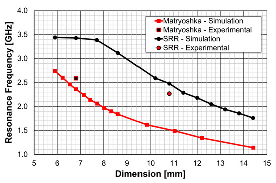 The simulation results for the open Matryoshka configuration were validated with experimental results, as shown in Figure 16.